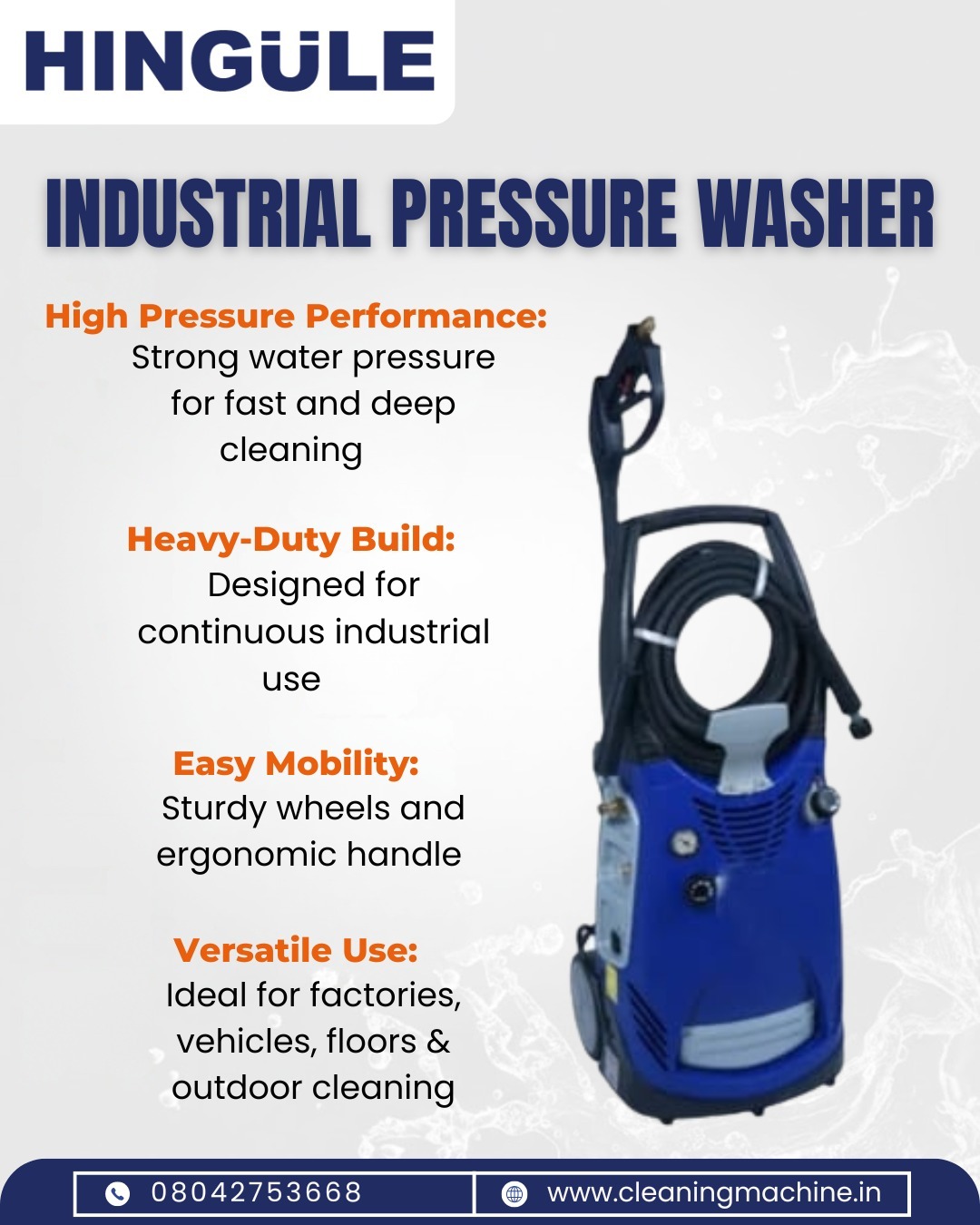 Hingule Engineering offers the best industrial pressure washer manufacturer in Ahmedabad, built for heavy-duty cleaning of concrete, machinery, vehicles, and more.