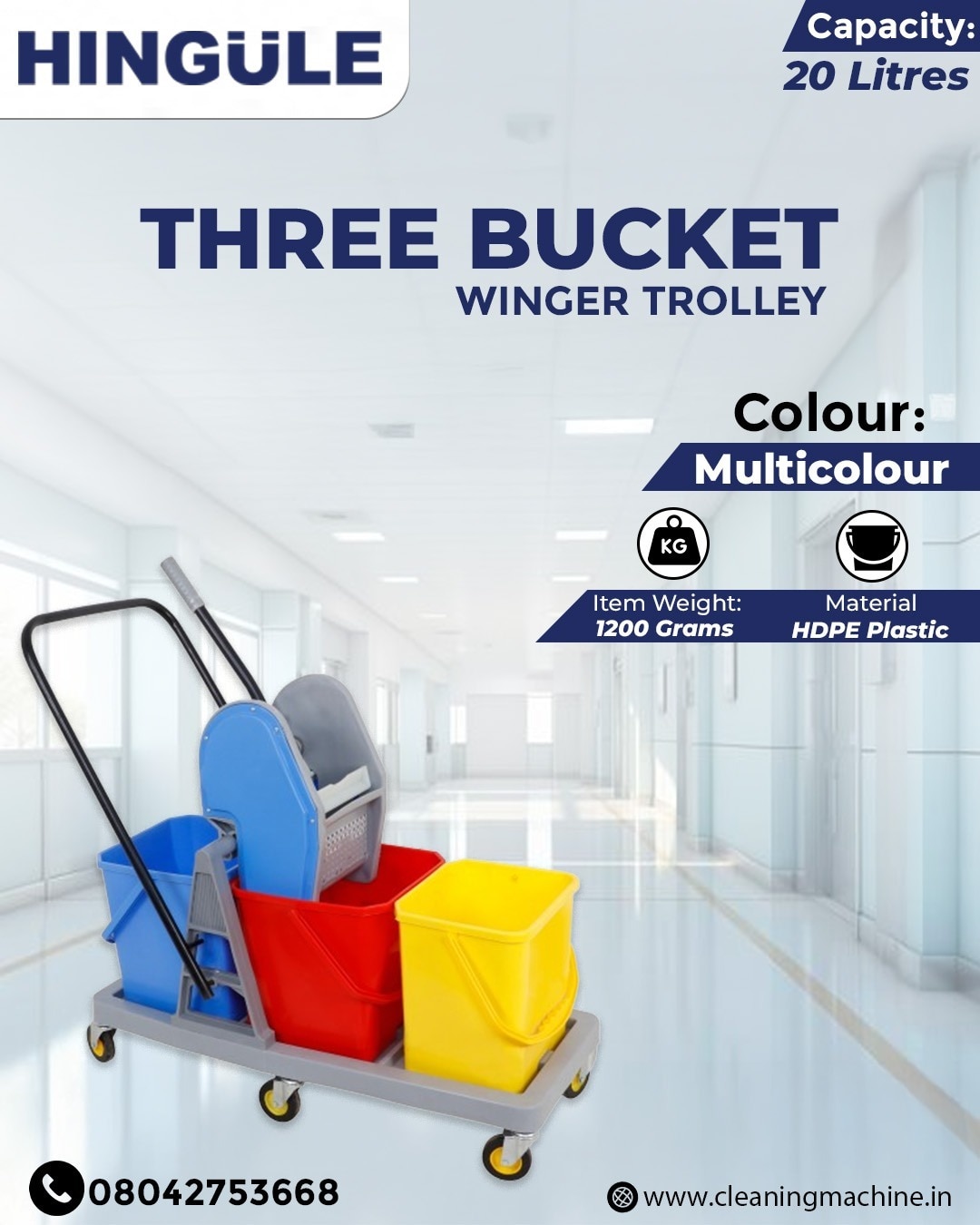 Upgrade your cleaning process with Hingule—your reliable partner and one of the best Three Bucket Mopping Wringer Trolley Manufacturers in Ahmedabad and Gujarat.
