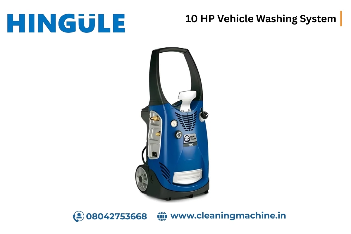 Vehicle Washing System Manufacturers in India. Specially engineered for commercial and industrial vehicle cleaning, this 10 HP Vehicle Washing System delivers high-pressure performance to remove tough dirt, grease, and grime from all types of vehicles. Its advanced features make it ideal for service centers, fleet operators, and vehicle maintenance units that require a fast, powerful, and efficient washing process. Technical Specifications • Mobility: Two-wheel trolley with ergonomic handle • Pump Type: Triplex pump with ceramic piston and connecting rod system • Pump Head: High-grade brass • Safety: Automatic safety valve with pressure shut-off at pump head • Control System: Remote-controlled total shutdown for added convenience • Motor: Three-phase heavy-duty motor with thermal protection • Pressure System: Adjustable pressure with built-in gauge • Detergent Handling: Built-in suction with adjustable injector • Detergent Tank: 21-litre capacity • Filter System: Inspectable water filter for pump protection • Power Cable Length: 5 meters Key Features • Heavy Duty Operation: Designed for continuous, industrial-grade performance • Efficient Cleaning Power: Easily removes oil, mud, and debris from all vehicle types • User Safety: Built-in safety systems protect equipment and operators • Smart Controls: Full remote shutdown and real-time pressure monitoring • Detergent Management: Integrated injection system with generous tank capacity • Durability & Reliability: Built with top-tier components for long-term use • Low Maintenance: Easy-to-service design reduces downtime and service costs • Cost-Effective: High efficiency helps reduce water, detergent, and electricity usage Trusted Vehicle Washer Manufacturer in India As a leading Vehicle Washer Manufacturer in India, HINGULE ENGINEERING is committed to delivering solutions that blend power, performance, and long-term reliability. Our 10 HP Vehicle Washing System is built to support high-volume cleaning operations with precision and ease, helping you maintain cleanliness and professionalism across your fleet or service center. With an emphasis on quality manufacturing and practical innovation, Hingule Engineering continues to set benchmarks in the industrial cleaning equipment industry. Looking for a high-efficiency washing solution for commercial use? Trust Hingule Engineering — your reliable 10 HP Vehicle Washing System Manufacturer in India. Contact us today to know more or place your order!