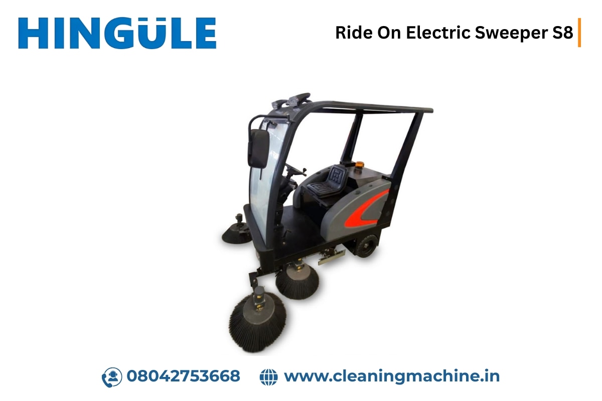 Top Ride On Electric Sweeper Manufacturers in Ahmedabad. Looking for a powerful and efficient cleaning solution for large industrial or commercial spaces? HINGULE ENGINEERING presents the advanced Ride On Electric Sweeper, designed to deliver exceptional performance, superior maneuverability, and whisper-quiet operation — all in one robust machine. Technical Specifications – Model: S8 • Working Width: 1850 mm • Side Brush Diameter: 260 mm • Main Brush Length: 690 mm • Main Brush Motor Power: 1000 W • Side Brush Motor Power: 90 W × 4 • Walking Motor Power: 1200 W • Dust-Shaking Motor Power: 145 W • Water Tank Capacity: 50 L × 2 • Total Dimensions (L×W×H): 1850 mm × 1850 mm × 1900 mm • Self-Weight: 480 kg • Machine Noise: < 65 dB(A) Leading the Way in Ride On Electric Sweeper Technology • Wide & Mighty: 1850 mm working width helps you cover more area in less time • Effortless Maneuvering: 1200W walking motor ensures smooth, controlled movement • Efficient Dust Control: 145W dust-shaking motor keeps the system clean and powerful • Whisper-Quiet Operation: Operates under 65 dB(A), ideal for noise-sensitive environments • Built to Last: Rugged structure and compact design for long-term use in tough conditions As leading Ride On Electric Sweeper Manufacturers in India, we ensure that every unit is tested for performance and durability. Our Ride On Electric Sweeper delivers consistent cleaning results and minimal maintenance downtime — making it the preferred choice for modern facilities. Whether you're upgrading your cleaning system or starting fresh, the Ride On Electric Sweeper by HINGULE ENGINEERING is your ideal partner in floor care. Call Us for More Information.