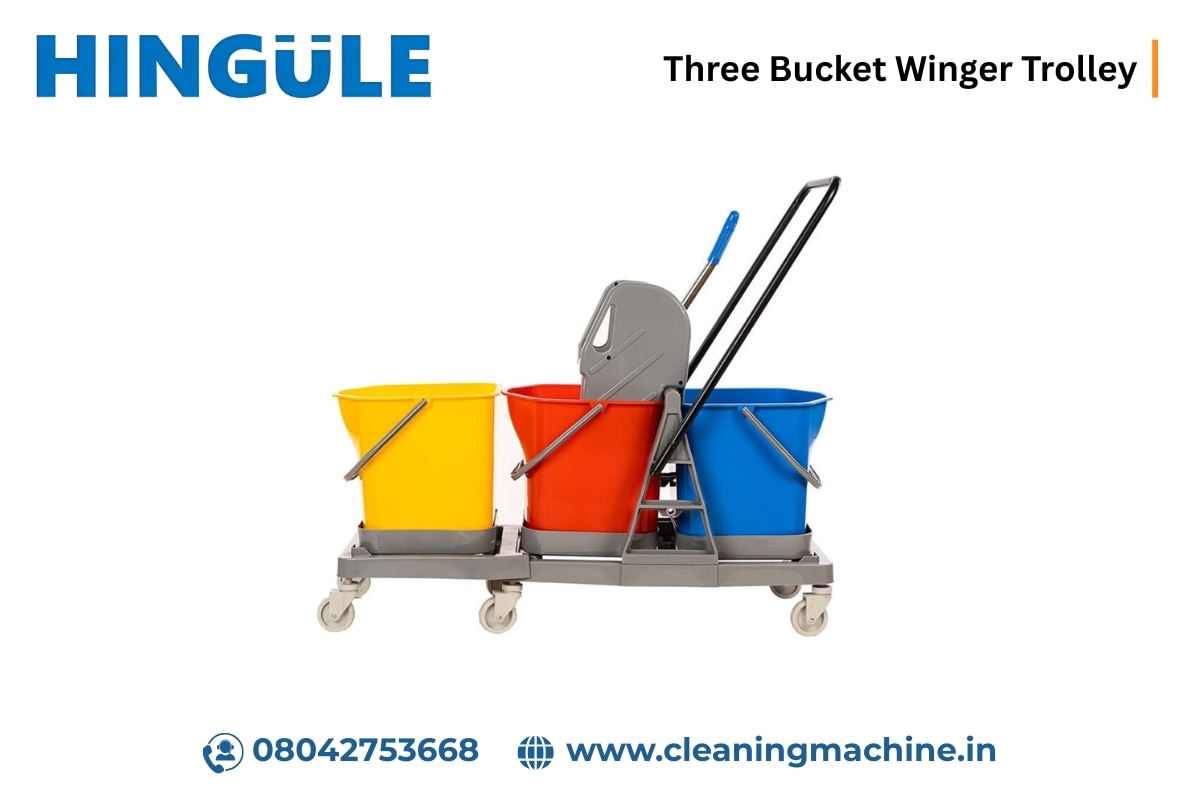 Three Bucket Wringer Trolley Manufacturers in India. The Three Bucket Winger Trolley is designed with a heavy-duty plastic and metal structure, ensuring high durability for everyday use in demanding environments. Whether you're managing cleaning operations in a hotel, hospital, mall, or commercial kitchen, this trolley delivers reliable performance and long service life. Its user-friendly design eliminates the need for bending while changing buckets or wringing out a wet mop—minimizing physical strain and improving efficiency. The flexible operation of the trolley allows for quick, effective floor cleaning with less effort and time. Technical Specifications – Three Bucket Winger Trolley Colour: Multicolour Material: HDPE Plastic Item Weight: 1200 Grams Capacity: 20 Litres Shape: Rectangular With Lid: Yes Country of Origin: India The bright yellow-colored frame ensures high visibility, promoting safety in busy spaces. Warning signs are printed directly on the body, removing the need for separate caution boards while keeping passersby alert to wet floors. This trolley is suitable for a wide range of applications, including households, restaurants, commercial spaces, banquet halls, institutions, and more. The three-bucket system is designed for maximum hygiene and ease of use: • Bucket 1: Contains water mixed with detergent to clean the mop. • Bucket 2: Used to rinse the mop thoroughly. • Bucket 3: Can be filled with disinfectant to sanitize the mop before floor application. With its smart layout and ergonomic function, the Three Bucket Winger Trolley ensures a cleaner space with every use.